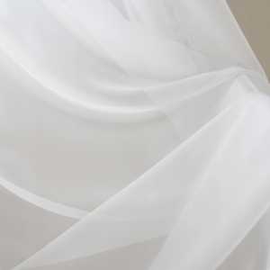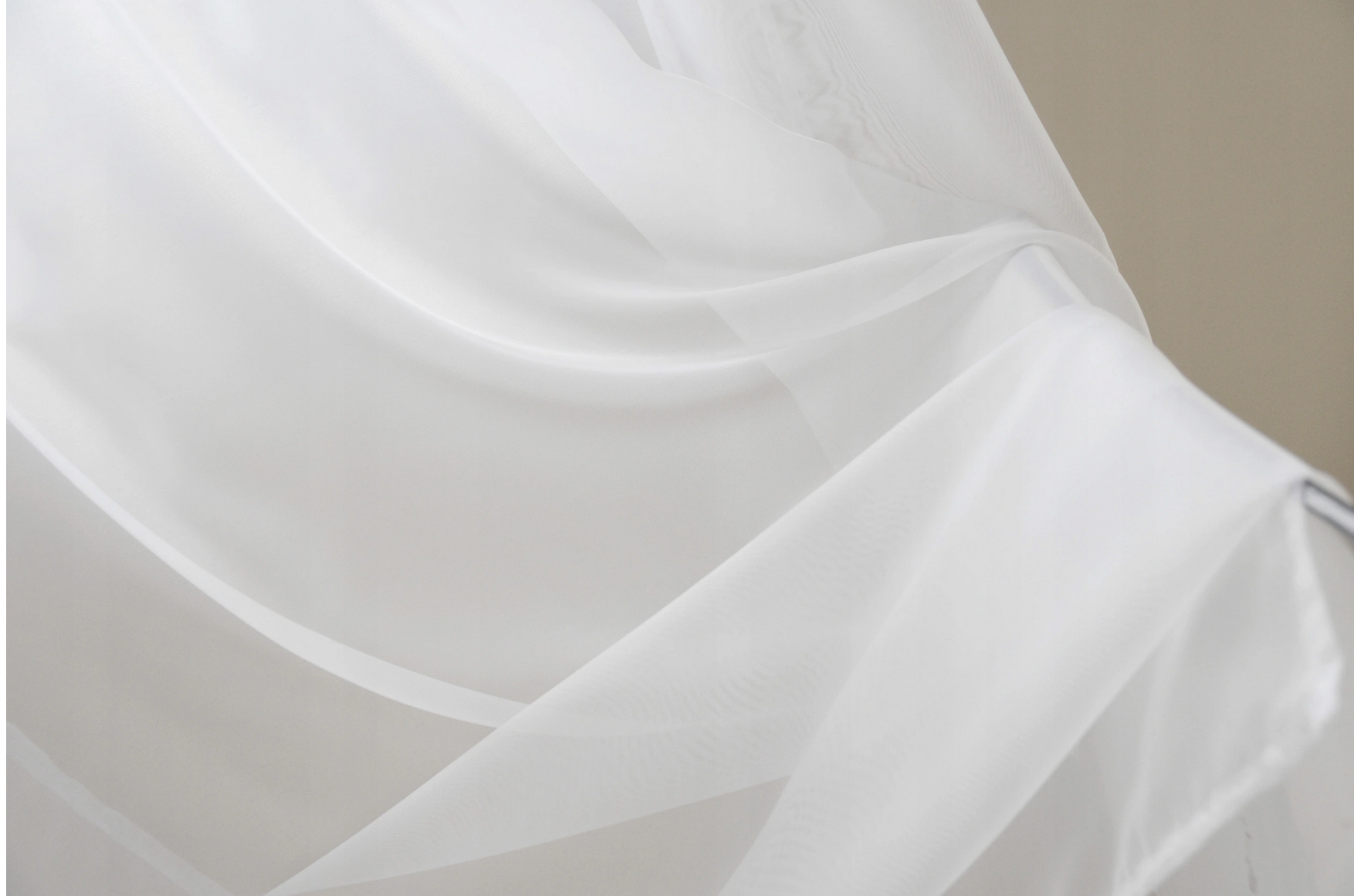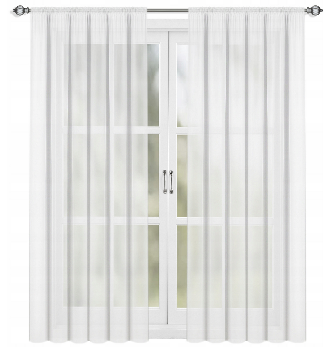 Dekoracyjna firana wykonana z wysokiej jakości śnieżnobiałego gładkiego woalu na metalowych przelotkach.